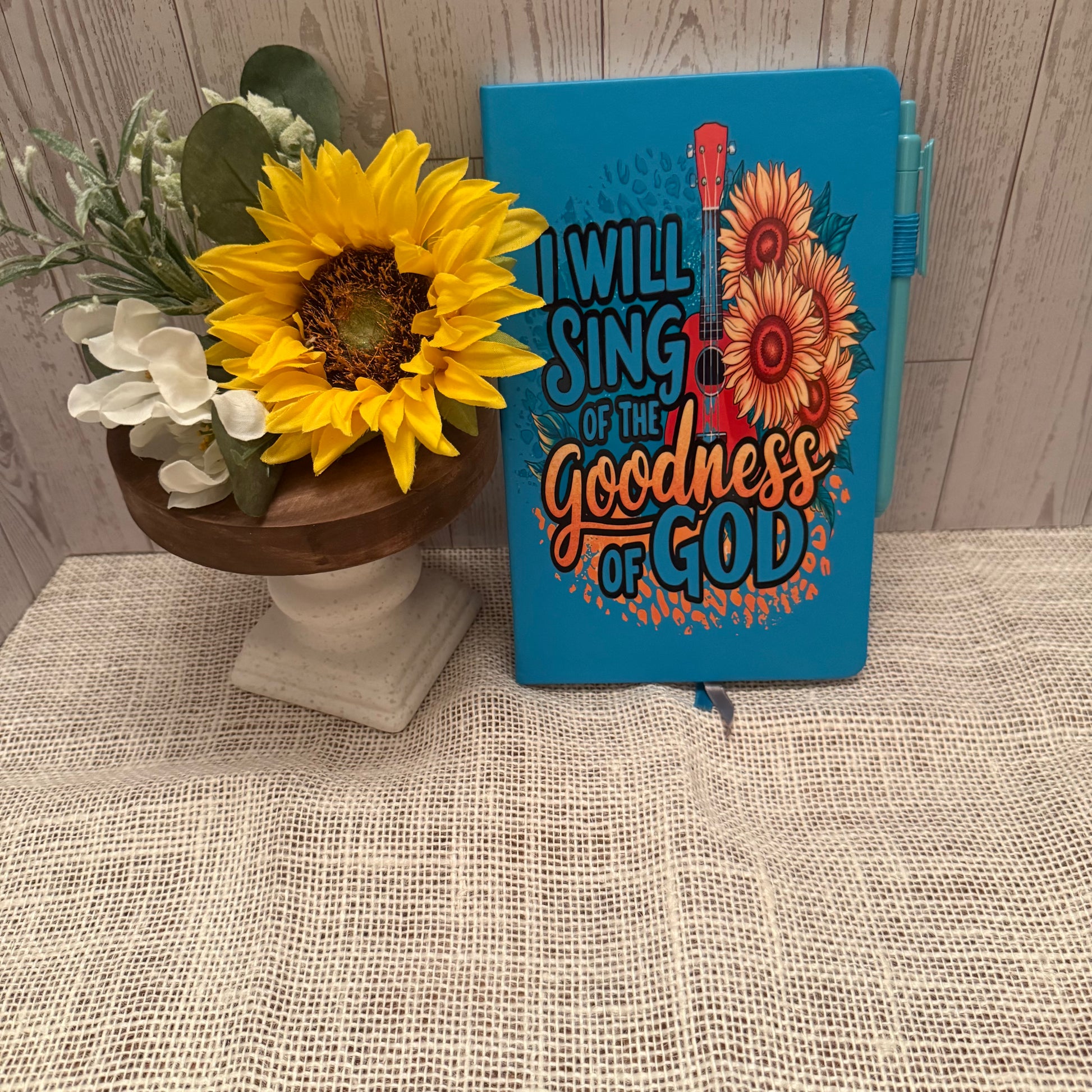 This A5-sized "I Will Sing of the Goodness of God" journal offers a thoughtful space for reflection and gratitude. Featuring lined pages, it helps organize your thoughts clearly, while the included pen and convenient pen holder ensure you’re always ready to write. Ribbon placeholders allow easy navigation through your entries, making this journal both practical and inspiring for daily use.