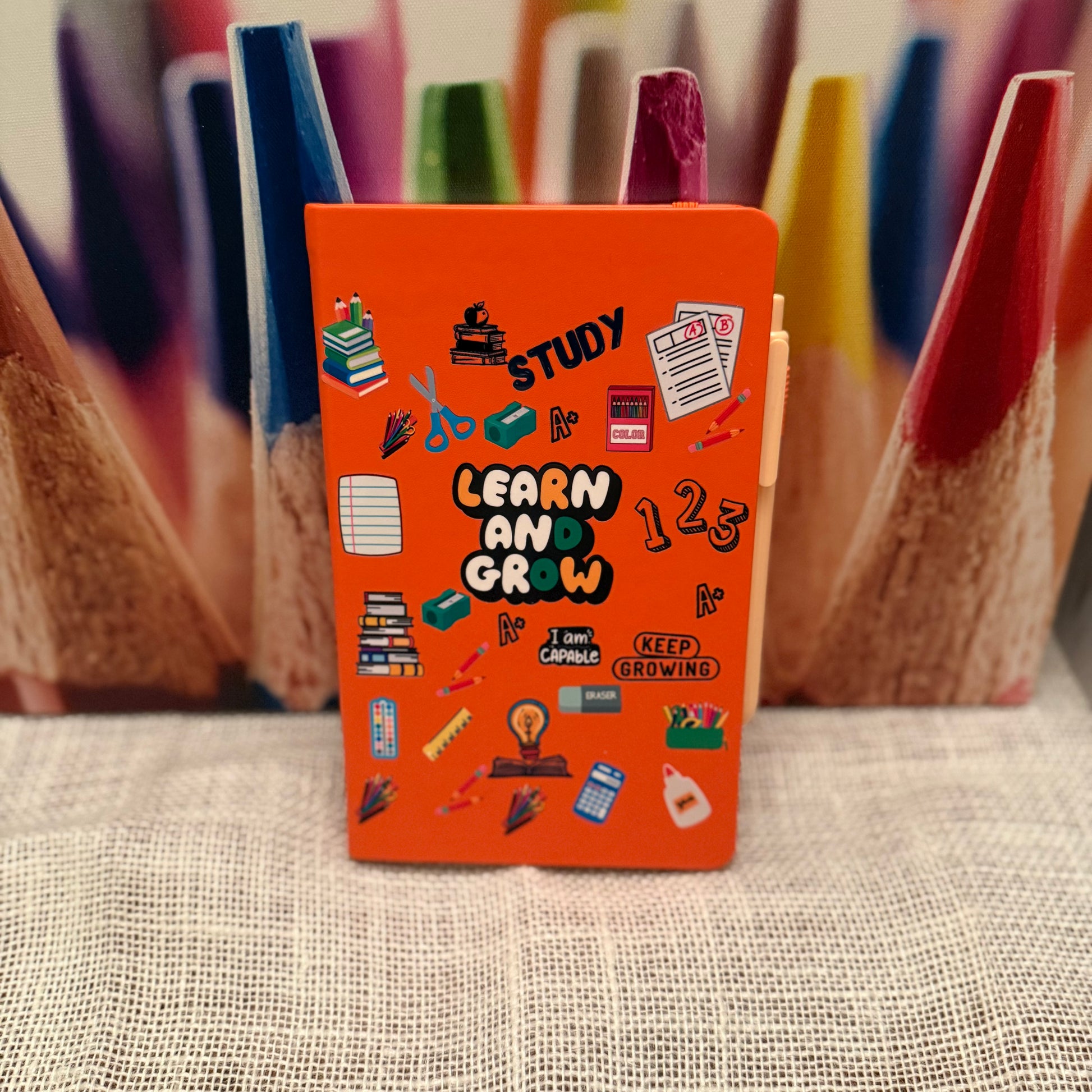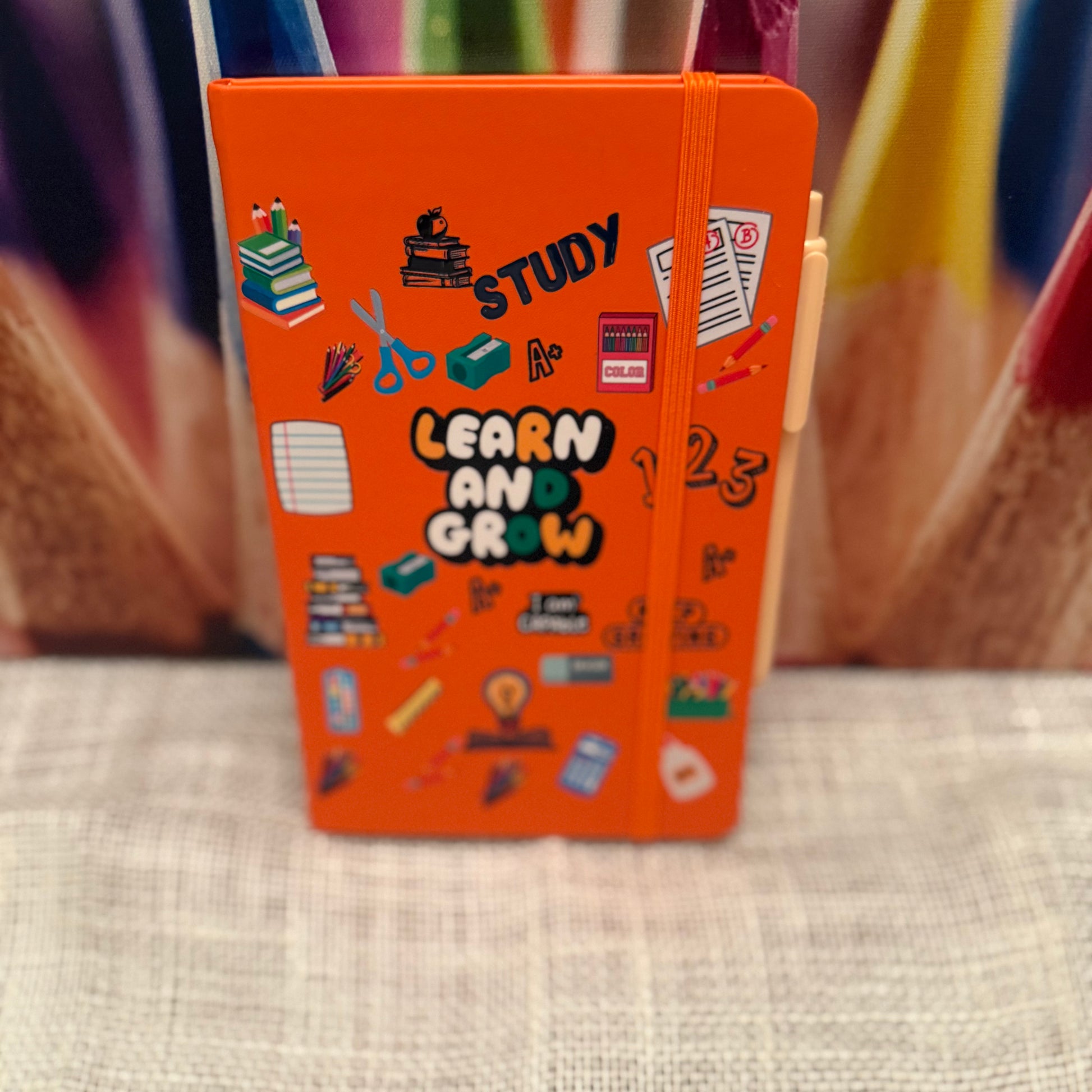This “Learn and Grow” journal is thoughtfully designed to support students in their educational journey. Featuring lined pages for organized note-taking, it includes a convenient pen holder and an attached pen to ensure writing tools are always within reach. Ribbon placeholders allow easy bookmarking of important sections, making it practical for daily use. Perfect for fostering learning habits, this journal combines functionality with a sleek design to encourage consistent growth and reflection.