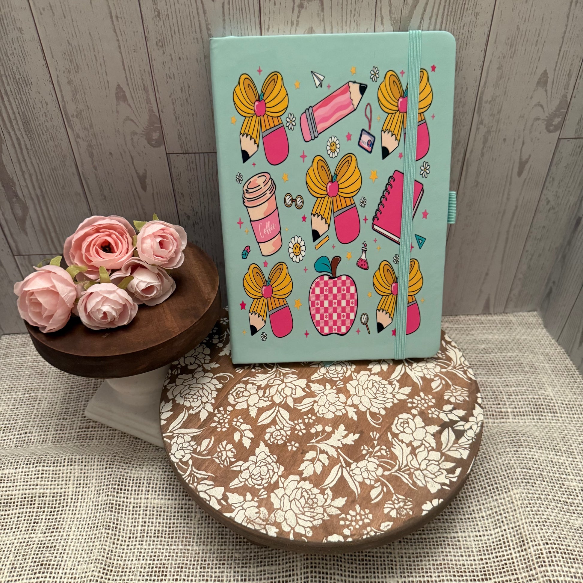 This teacher bow pencil journal combines practical design with vibrant aesthetics to enhance your note-taking experience. Featuring teacher-inspired lined pages and colorful graphics, it encourages organized and creative journaling. Included are a pen, convenient pen holder, and ribbon placeholders, making it an ideal companion for daily planning, lesson note-taking, or personal reflection. Durable and thoughtfully designed, this journal supports effective organization and ease of use throughout your busy day.